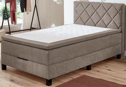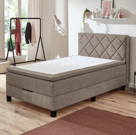 couchage env. 120 x 200 cm, matelas principal avec rembourrage à ressorts Bonell, avec topper intégré, avec coffre à literie, tissu beige