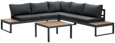 Ensemble de canapés Paros comprenant: 2x canapés, 1x coin, 1 table, cadre alu anthracite/optique en bois teck, avec coussins, tissu anthracite