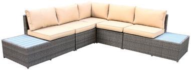 Ensemble de canapés Sea optique rotin brun, comprenant: 2x canapés avec table d‘appoint, 2x canapé, 1x angle, avec rembourrage de siège et dossier