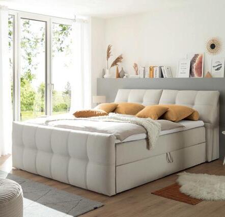 couchage env. 180 x 200 cm, matelas supérieur 9-zonesmatelas à ressorts de poche, coffre à literie avec ressort pneumatique, cadre solide de haute qualité, tissu creme, sans coussins-déco, sans couverture-déco