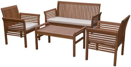Akazie massiv, 1x Zweisitzer Bank, B/H/T ca. 129/78/61 cm, 2x Armlehnstühle B/H/T ca. 62/78/61 cm, 1x Tisch B/H/T ca. 100/45/50 cm, mit Kissen 0294011900 komplett