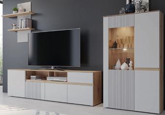Artisan Eiche Nachbildung, Ø/H ca. 60/47 cm 0579001201 139,99 449,99 Wohnwand Indy Old Wood Nachbildung/ Graphitgrau Matera Nachbildung, B/H/T ca. 343/189/40 cm 0317007600 mit LED-Beleuchtung Alles Abholpreise Wohnwand Zumba weiß/Betonoptik Lichtgrau, B/H/T ca. 300/201/41 cm 0629009601 299,99