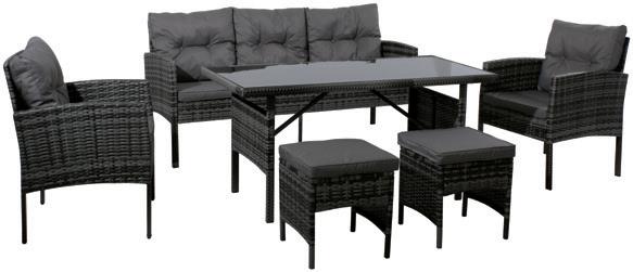 Kunststoffrattan schwarz, bestehend aus: 1x 3er - Sofa, 2x Armlehnstuhl, 1x Coffee Table, 2x Hocker 0294012400