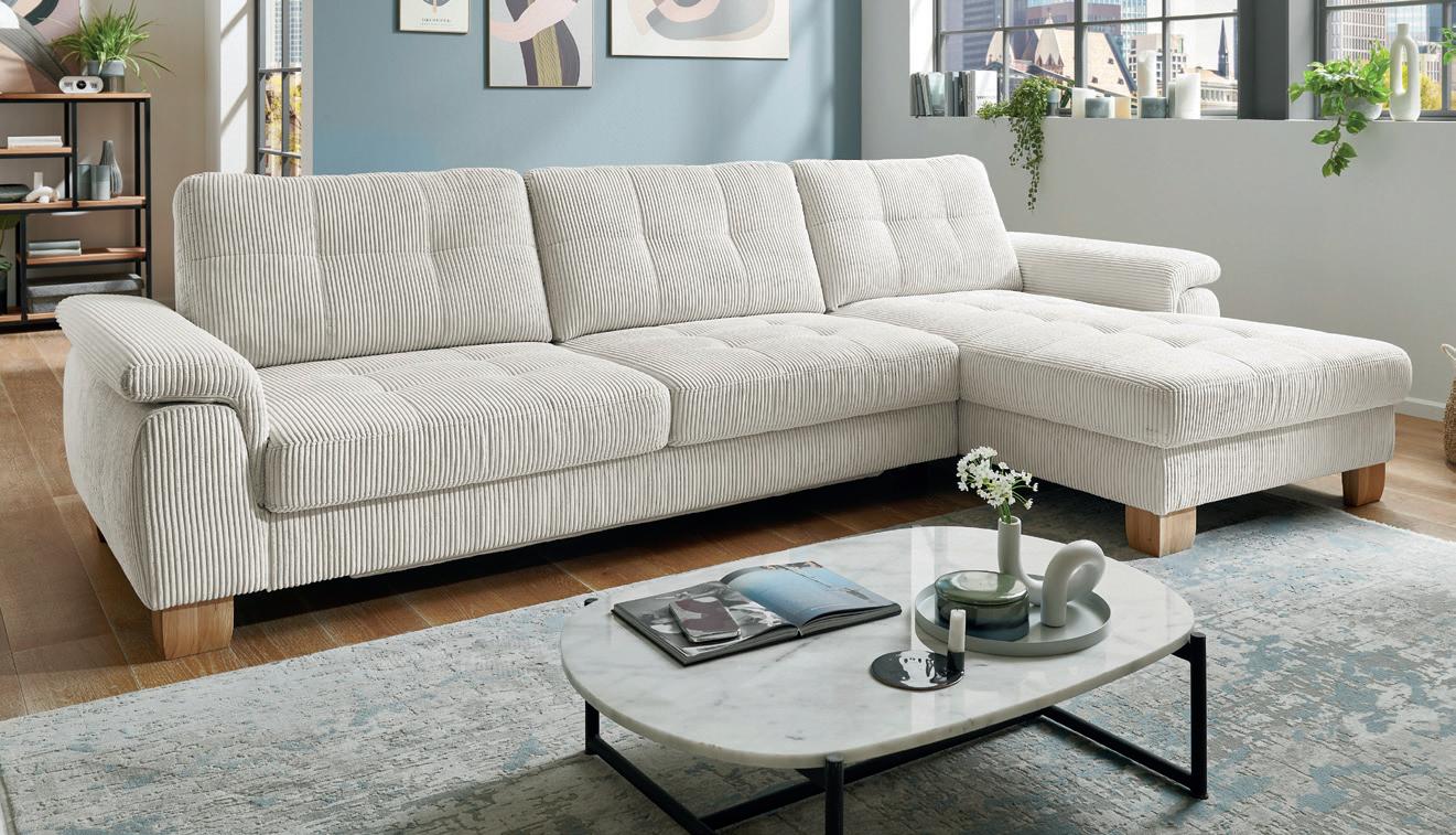 Wohnlandschaft Cindy Cord Creme, Stellmaß ca. 284 x 196 cm, Liegefläche ca. 212 x 124 cm