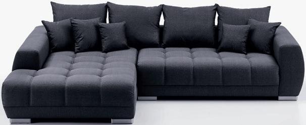bestehend aus: 1 Canape mit Armlehne links, 1 Zweieinhalbsitzer, 1 Spitzecke, 1 Eineinhalbsitzer mit Anstellhocker rechts, Kaltschaumpolsterung, Stellmaß ca. 163 x 319 x 241 cm, Stoff anthrazit, Füße schwarz, ohne Deko-Kissen 0116004821