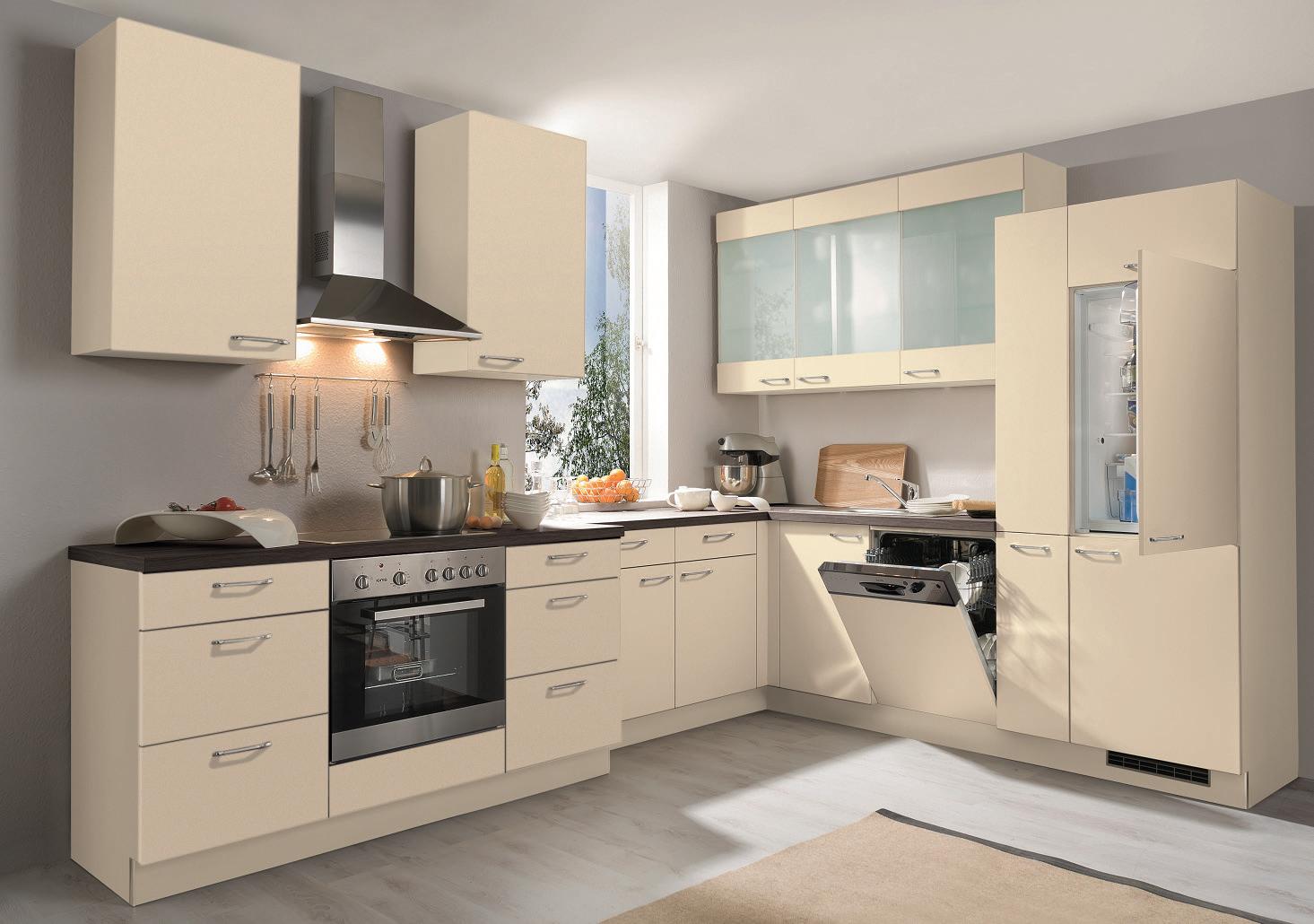 Eckküche Moon, ca. 315 x 275 cm, Lack matt Magnolia inkl. Elektroherd Dalbach HE-01