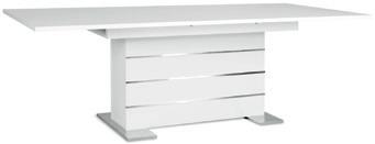 6 Küche in T-Form Inox/Flash, ca. 420 x 210 cm, Stahl gebürstet Nachbildung/ Lack Hochglanz weiß