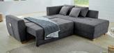 bestehend aus: 1 Zweisitzer mit Schlaffunktion und Bettkasten links, 1 Ottomane rechts, mit Kissen, Stellmaß ca. 250 x 212 cm, Liegefläche ca. 140 x 200 cm, Stoff dunkelgrau