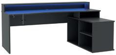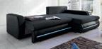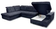 bestehend aus: 1 Zweisitzer mit Bettfunktion, Stauraum und Armlehne links, 1 Ottomane rechts, mit Kissen und LEDBeleuchtung, Stellmaß ca. 267 x 178 cm, Liegefläche ca. 234 x 138 cm, Stoff schwarz