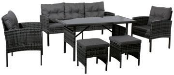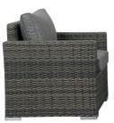 Kunststoffrattan braun, bestehend aus: 1x 2er - Sofa, 2x Sessel, 1x Tisch, B/H/T ca. 68/35/68 cm, mit Kissen 0294012700