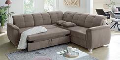 bestehend aus: 1 Zweisitzer mit Bettfunktion links, 1 Ottomane mit Bettkasten rechts, mit Bonellfederkernpolsterung, mit Kissen, Stellmaß ca. 230 x 190 cm, Liegefläche ca. 202 x 165 cm,