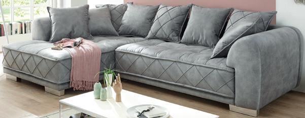 bestehend aus: 1 Ottomane links, 1 Zweisitzer rechts, mit Kissen, Stellmaß ca. 319 x 194 cm, Stoff grau, ohne Deko-Decke 0479019300
