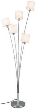 bestehend aus: 1 Ottomane links, 1 Dreisitzer, 1 Ecke, 1 Ottomane rechts, Stellmaß ca. 210 x 357 x 249 cm, inkl. 4 Zierkissen, Stoff hellgrau