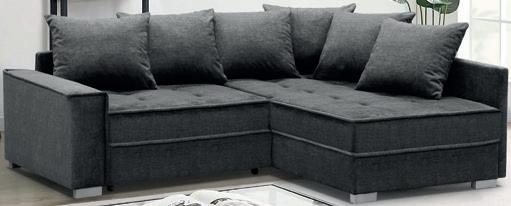 comprenant: 1 méridienne à gauche, 1 canapé 2 places avec fonction convertible et coffre à literie à droite, avec coussins, encombrement env. 180 x 268 cm, couchage env. 120 x 215 cm, tissu anthracite