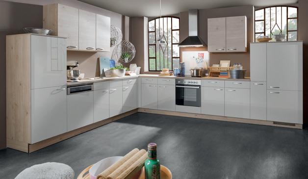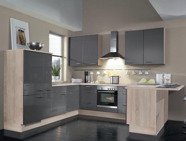 blanc roseaux gris pierre 3999,- 1 Bloc cuisine Cascada, env. 350 cm, vernis roseaux mat four encastré Laurus LEH3 A** hotte aspirante Elica Vega60Gr.-D D** table de cuisson vitro-céramique Laurus LCF60 réfrigérateur Laurus LKS88F F A G lave-vaisselle Laurus LST604 Livrable en 3 couleurs E A G 15B ** EEK Spectrum A à G Livrable en 7 couleurs planifiable individuellement 3999,blanc brillant crème brillant rouge mars brillant bleu foncé brillant antracite brillant magnolia brillant gris clair brillant 3 Cuisine en forme de „U“ Star, env. 180 + 225 x 185 cm, vernis magnolia brillant four encastré Ignis AKB20102IX A** hotte îlot Elica Cruise 90 E** table de cuisson vitro-céramique Terma Cook HKT604EU vaisselier, éléments tiroirs réfrigérateur GGV KS88-F F A G 5 Cuisine d´angle Easytouch, env. 305 x 265 cm, vernis graphite noir four encastré Laurus LEB3 A** hotte aspirante Elica ADELE BL-MAT-A60 D** evier