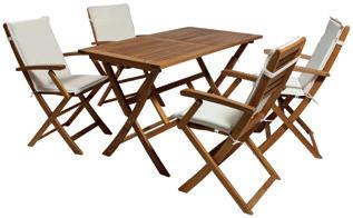 Mobiler de jardin Lian acacia massif, comprenant: 1x table pliante L/H/P env. 120/74/70 cm, 4x chaise pliante avec accoudoirs et coussins 0294006400