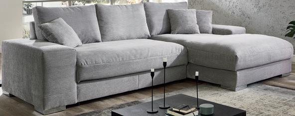 comprenant: 1 canapé 2 places avec fonction convertible à gauche, 1 méridienne à droite, avec coussins, couchage env. 227 x 154 cm, encombrement env. 298 x 202 cm, tissu cord gris 0343000900