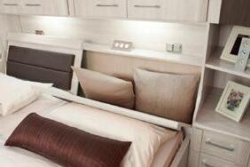 env. 160 x 203 cm, avec fonction convertible et coffre à literie, dormeur permanent, avec coussins,