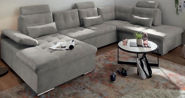 Unsere Sofas sind handwerkliche Meisterleistungen, mit Bezügen, die sich sehen lassen können. Zusätzlich sind sie alle mit dem „Goldenen M“ ausgezeichnet. QUALITÄT 1999,99 BASISPREIS 36 x mtl ab 62,- * oder grenzenlos individuell... mit Sitztiefenverstellung mit Sitztiefenverstellung mit Sitztiefenverstellung Wohnlandschaft Apollo Calido Steel, Stellmaß ca. 195 x 371 x 260 cm, mit Sitztiefenverstellung, ohne Deko-Kissen 0385001030 Stoffauswahl mit Typenplan Auch in Leder mit großer Stoffpalette PLANUNGSBEISPIEL inkl. Sitztiefenverstellung, Kopfteilverstellung, Relaxfunktion und 3 Nierenkissen 2799,99 Dreisitzer Trapezsofa Penelope anthrazit, Breite ca. 218 cm 0755001400 mit Kopfteilverstellung 36 x mtl ab 46,- * oder 1499,99 BASISPREIS inkl. Kopfteilverstellung, 1 motorischer Wall Away und Funktionsablage mit USB-Steckdose PLANUNGSBEISPIEL 3 SITZER 2199,99 mit Kopfteilverstellung Zweieinhalbsitzer Trapezsofa Penelope anthrazit, Breite ca. 186 cm, ohne Deko-Kissen 0755001404 999,99 36 x mtl ab 31,- * oder Stoffauswahl mit Typenplan mit Federkern 4 * Nähere Informationen erhalten Sie auf der Rückseite. Gestalten Sie Ihr individuelles Lieblingssofa! Wohnlandschaft Marisol Cord grau, Stellmaß ca. 286 x 199 cm, ohne Deko-Kissen 1018003600 mit Federkern Stoffauswahl mit elektrischer Sitztiefenverstellung mit Kopfteilverstellung Stoff Cord Wohnwand Loft Two Artisan