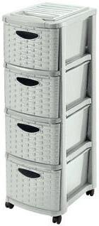Schubladenturm Rattanoptik, mit 4 Schubladen und Rollen, ca. 29/39/85 cm, versch. Farben
