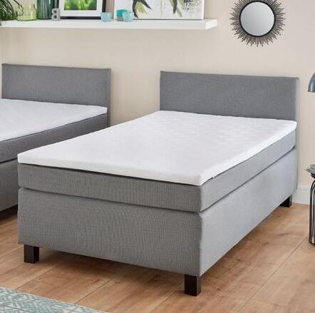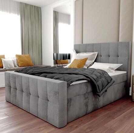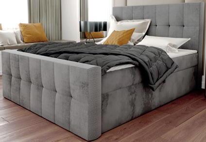 Lit Box Diego couchage env. 160 x 200 cm, matelas principal ressorts ensachés pocket, incl. topper et 2 coffres à literie, tissu gris, sans coussins-déco, sans couverture-déco 1046000200 incl. topper