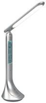Lampe de bureau matière plastique blanc ou couleur titane, incl. 1x SMDLED 4 watt, hauteur env. 34 cm, avec affichage de l‘heure, de la date et de la tem-