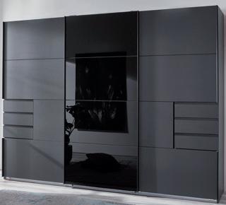 Armoire à portes coulissantes Saigon graphite/ verre noir, L/H/P env. 271/210/64 cm