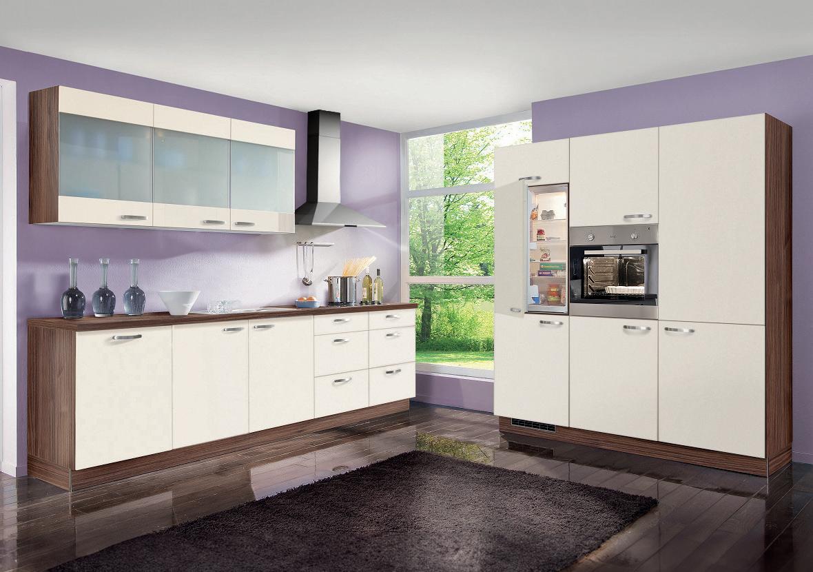 6 Cuisine d´angle Cascada, env. 304,8 + 240,3 x 110 cm, vernis magnolia mat four encastré-set table de cuisson vitro-céramique