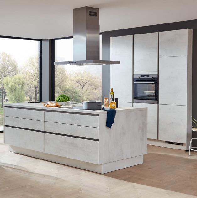 E A G 5899,aqua gris ardoise magnolia blanc alpin gris soie gris soie gris pierre mitigeur Livrable en 7 couleurs 5299,planifiable individuellement 2 Cuisine d´angle Riva, env. 250 x 300 cm, béton gris ardoise/béton sable