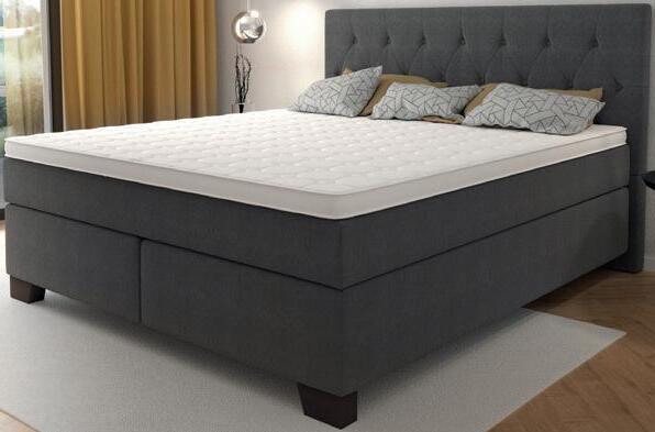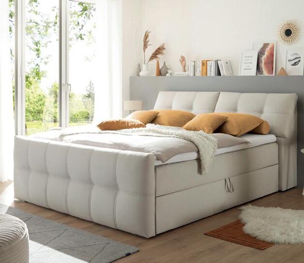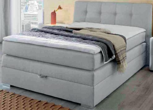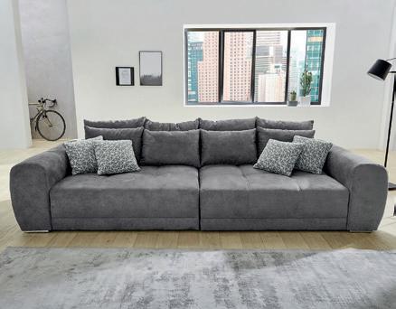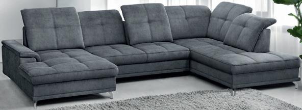 comprenant: 1 canapé et 1 méridienne avec coffre à literie, couchage env. 133 x 234 cm, encombrement env. 305 x 203 cm, pieds métal couleur chrome, dossier réelle, incl. 6 coussins de dossier gris et 1 coussin fluppy rose, tissu gris 1007005800