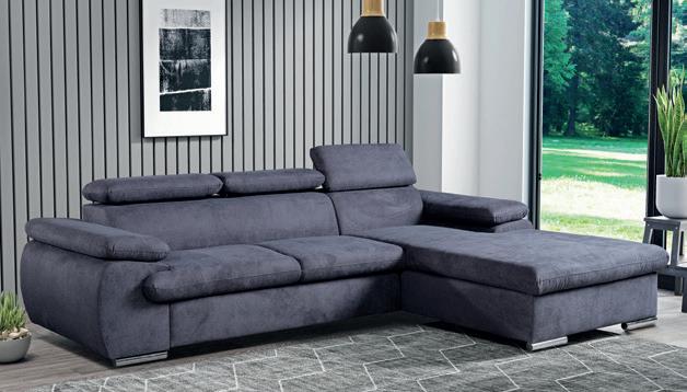 comprenant: 1 méridienne à gauche, 1 canapé 2 places avec fonction convertible et coffre à literie à droite, avec coussins, encombrement env. 180 x 268 cm, couchage env. 120 x 215 cm, tissu anthracite