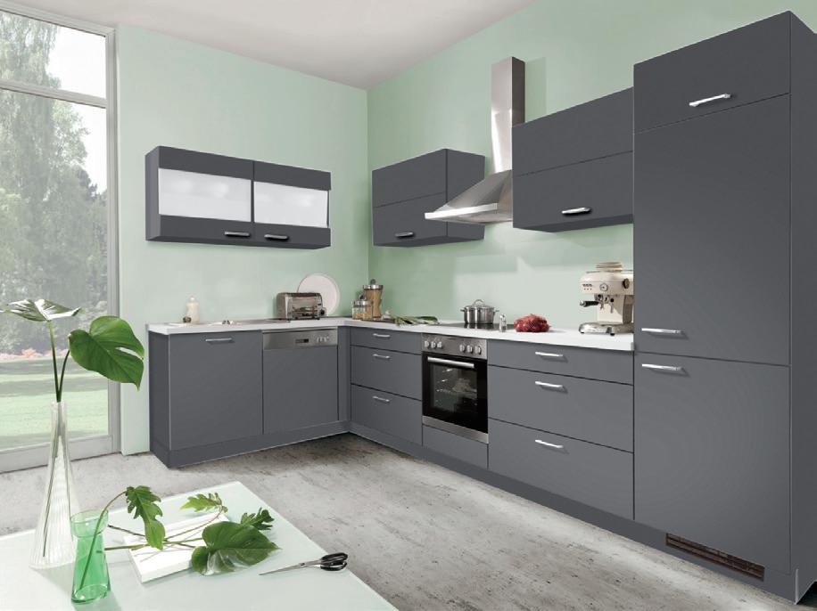 2 Cuisine d´angle Star, env. 185 x 365 cm, vernis anthracite brillant