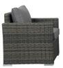 Mobiler de jardin Beach optique rotin gris, comprenant: 1 table L/H/P env. 150/85/67 cm, 1 canapé 3 places à gauche, 1 coin, 1 canapé 2 places à droite, encombrement env. 182 x 201 cm, avec