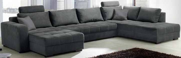 comprenant: 1 méridienne avec coffre à literie à gauche, 1 canapé 2 places avec fonction convertible, 1 récamiere à droite, dossier réelle, avec réglage du siège, encombrement env. 178 x 360 x 225 cm, couchage env. 280 x 135 cm, tissu gris