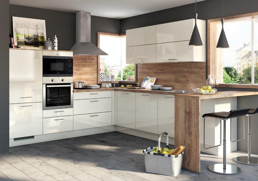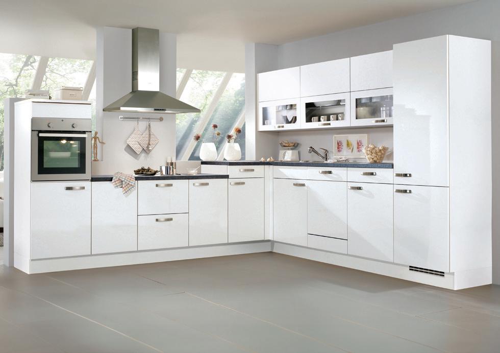 1 Eckküche Flash, ca. 245 x 245 cm, Lack Ultra-Hochglanz weiß