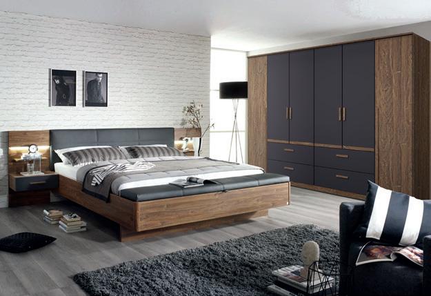 Schlafzimmer Old Style dunkel/Betonoxid mit Matratze mit Roll-Rahmen Dreh-/Schwebetürenschrank