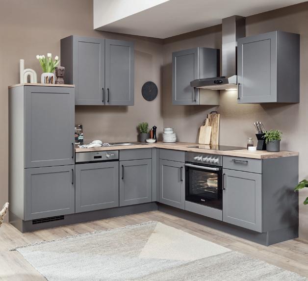 6 Eckküche Easytouch, ca. 360 + 245 x 100 cm, Lack matt Taupegrau