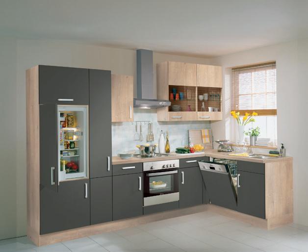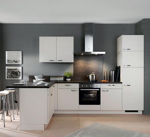 3 Eckküche Star, ca. 360 + 185 cm, Lack Hochglanz weiß/anthrazit