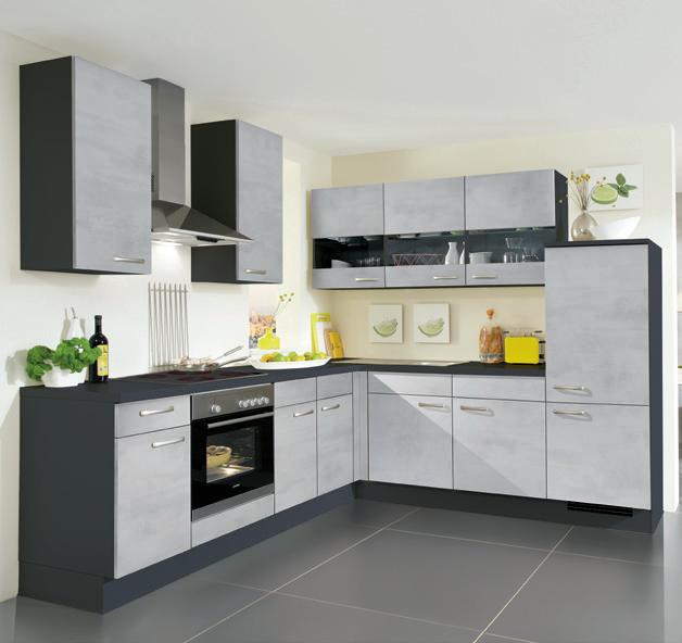 Bonität vorausgesetzt, Gültig nur bei Neukauf. Alles Abholpreise inkl. Elektroherd Dalbach HE-01 A** inkl. Turmhaube GGV UBH 10-INOX D** inkl. Kühlschrank GGV KS88F F A G inkl. Glaskeramikkochfeld Dalbach KFH60-01 1 Küchenblock Win, ca. 270 cm, weiß 1599,36 x mtl ab 50,- * oder Preisgleich in 8 Frontfarben lieferbar Individuell planbar Crema Karminrot Anthrazit Weiß Dunkelblau Magnolia Hellgrau Dunkel grün inkl. Elektroherd Laurus LEH3 A** inkl. Turmhaube Elica Vega60Gr.-D D** inkl. Kühlschrank Laurus LKS 88F F A G inkl. Glaskeramikkochfeld Laurus LCF60 Preisgleich in 7 Frontfarben lieferbar Glaskeramik-Kochfeld inkl. Geschirrspüler Laurus LST604 E A G 2 Küchenblock Riva, ca. 350 cm, Weißbeton Nachbildung 2999,36 x mtl ab 92,- * oder Eiche San Remo Beton Sand Beton Schiefergrau Beton Terragrau Weißbeton Nußbaum Betongrau Individuell planbar inkl. Geschirrspüler Individuell planbar Glaskeramik-Kochfeld 2799,36 x mtl ab 86,- * oder inkl. Elektroherd Ignis AKH-1001-IX A** inkl. Turmhaube Elica MissyDT60-D D** inkl. Kühlschrank GGV KS88F F A G inkl. Glaskeramikkochfeld Ignis AKL4990NE inkl. Auszugschränke, inkl. Wandsteckboarde 4 Eckküche Plan/Star, ca. 325 x 225 cm, Wildeiche Nachbildung/Lack anthrazit Glaskeramik-Kochfeld 2999,36 x mtl ab 92,- * oder Individuell planbar inkl. Geschirrspüler inkl. Elektroherd Laurus LEH3 A** inkl. Turmhaube Elica MissyDT60-D D** inkl. Kühlschrank Laurus LKS88F F A G inkl. Glaskeramikkochfeld Laurus LCF60 inkl. Geschirrspüler Laurus LST604 E A G 3 Eckküche Touch, ca. 245 x 245 cm, Lack Alpinweiß matt Lack matt Preisgleich in 7 Frontfarben lieferbar Eiche weiß Wildeiche Eiche grau Nussbaum Tabak Bergeiche Eiche astig Eiche schwarz GARTENMÖBEL ABVERKAUFS-PREISE! GARTENMÖBEL ABVERKAUFS-PREISE!