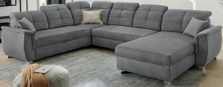 4 * Nähere Informationen erhalten Sie auf der Rückseite. Schnell-Lieferprogramm! ...Sonderbestellungen innerhalb 15 Arbeitstagen auf Lager! Dreisitzer Trapezsofa Penelope anthrazit, Breite ca. 218 cm 0755001400 Zweieinhalbsitzer Trapezsofa Penelope anthrazit, Breite ca. 186 cm, ohne Deko-Kissen 0755001404 36 x mtl ab 46,- * oder 1499,99 36 x mtl ab 31,- * oder 999,99 1799,99 36 x mtl ab 56,- * oder SSV Wohnlandschaft Riccarda anthrazit, Stellmaß ca. 184 x 347 x 249 cm, ohne Deko-Kissen, ohne Nierenkissen 0385001800 mit Federkern mit Federkern Komfortfunktionen gegen Mehrpreis Wohnlandschaft Triest grau, Stellmaß ca. 242 x 330 x 163 cm, ohne Deko-Kissen 0116000640 1599,99 36 x mtl ab 50,- * oder SSV mit Federkern Auch in Leder 1699,99 36 x mtl ab 53,- * oder SSV Wohnlandschaft Vittoria schwarz, Stellmaß ca. 323 x 260 cm, ohne Deko-Kissen, ohne Nierenkissen 0385001900 Wohnlandschaft Infinity braun, Stellmaß ca. 185 x 341 x 243 cm, ohne Deko-Kissen 0755001500 1999,99 36 x mtl ab 62,- * oder SSV mit Federkern moebel-fundgrube.de/sofaprogramme/ JETZT NOCH MEHR INSPIRATION ONLINE ENTDECKEN! Wohnlandschaft Seattle grau, Stellmaß ca. 192 x 356 x 254 cm, ohne Deko-Kissen 0385001500 2299,99 36 x mtl ab 71,- * oder mit Federkern mit Typenplan mit Typenplan weitere Komfortfunktionen gegen Mehrpreis erhältlich Stoffauswahl Stoffauswahl Stoffauswahl Stoffauswahl Stoffauswahl Stoffauswahl mit Kopfteilverstellung mit Kopfteilverstellung mit Kopfteilverstellung mit Kopfteilverstellung Komfortfunktionen gegen Mehrpreis mit Typenplan mit Typenplan mit Sitztiefenverstellung