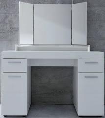 weiß Hochglanz, Korpus weiß, Absetzungen graphit geschroppt, B/H/T ca. 327/208/50 cm, mit LED-Frontbeleuchtung, ohne Paneelbeleuchtung, ohne Glasbodenbeleuchtung