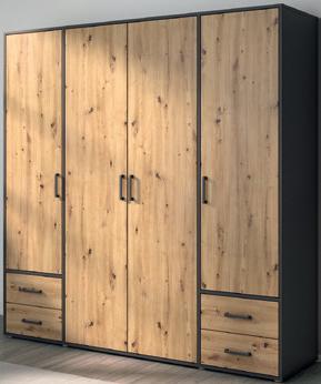 Drehtürenschranksystem mit Regalen, auch über Eck Ein Kleiderschrank mit Drehtüren, der sich mit System perfekt in ihre Raumgegebenheiten einfügt: das ist Dimension-5. Die Drehtürenschränke lassen sich durch einfaches Anbauen einzelner Schrankelemente individuell arrangieren und passen sich, dank Eckelementen, Regalen zum Zwischeneinbau und der Option Maßanfertigung, spielend leicht an jedes Raumkonzept an. Passende Beimöbel und Betten bestechen mit einer umfangreichen Typen-, Material- & Farbauswahl und harmonieren perfekt mit den Schränken.