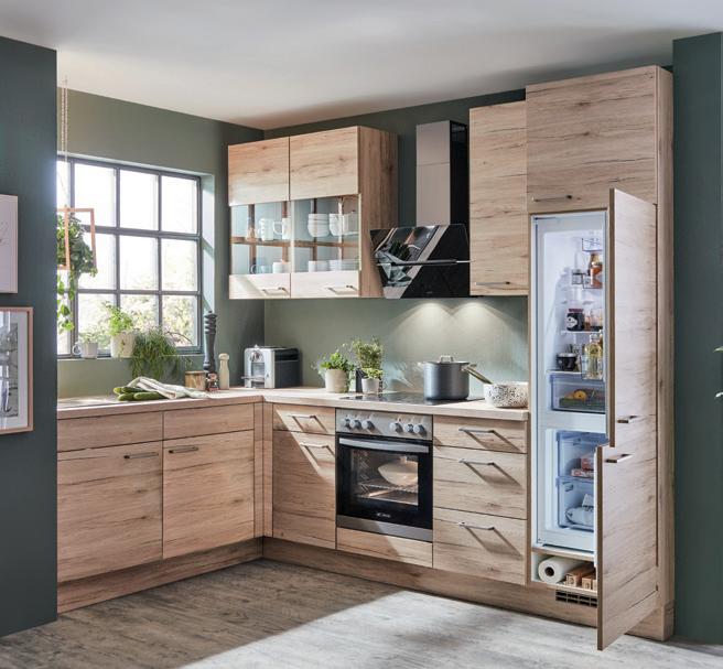 inkl. Kühlschrank Laurus LKS88E 6 Küchenblock Structura, ca. 340 cm, Eiche Havanna Nachbildung