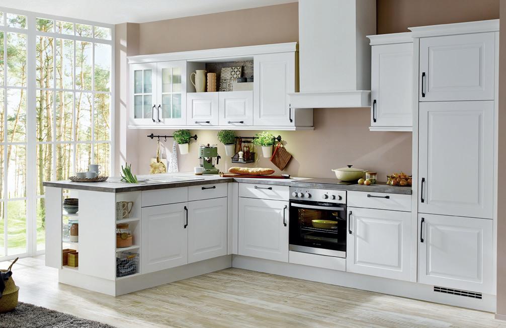 9 Eckküche Sylt, ca. 435 x 220 cm, Lack matt Alpinweiß