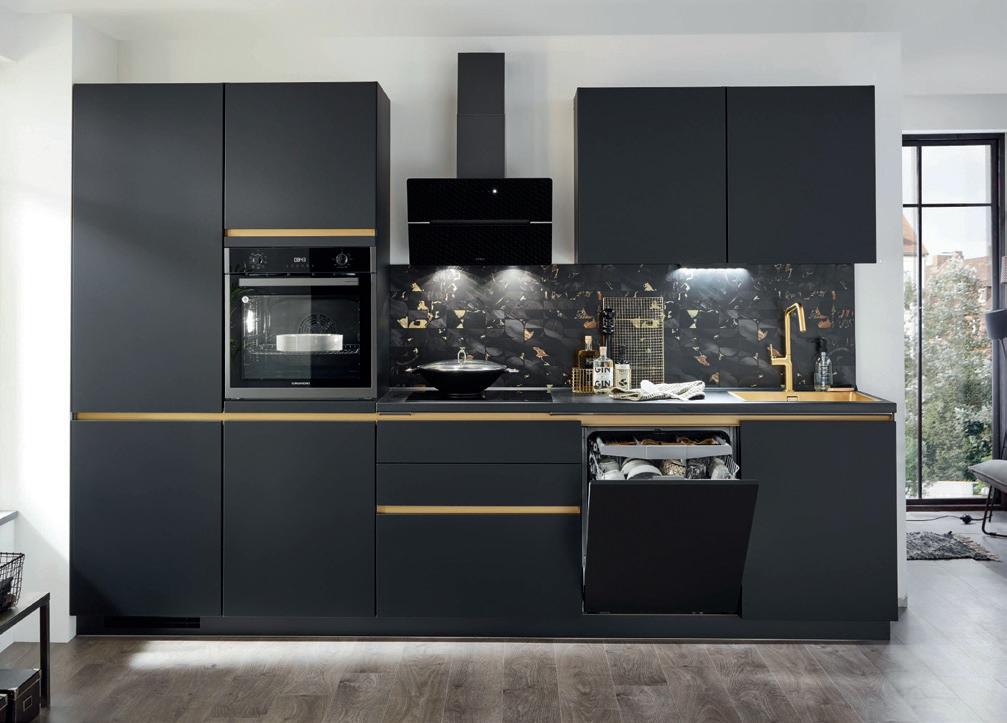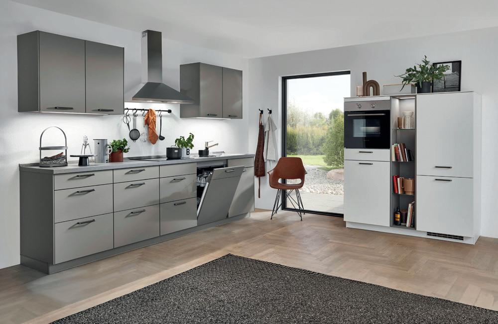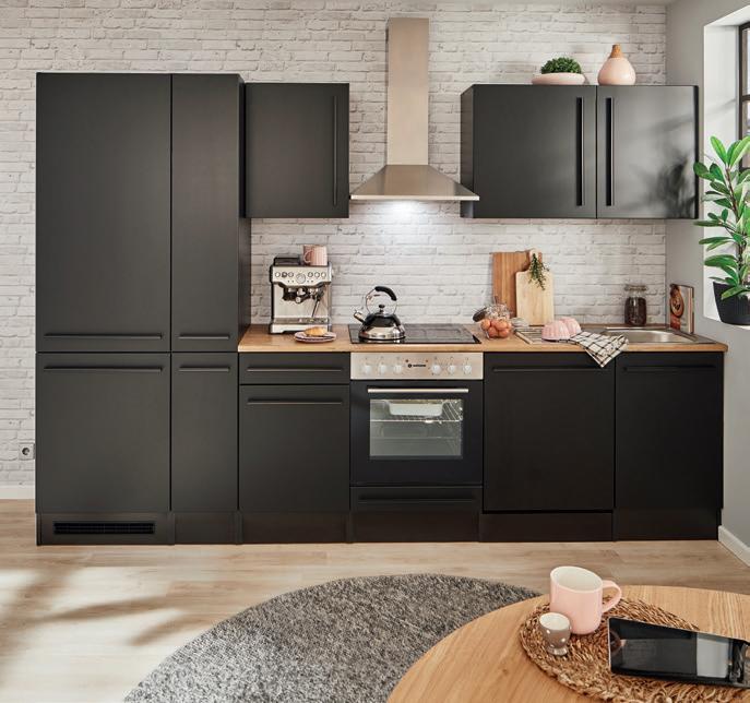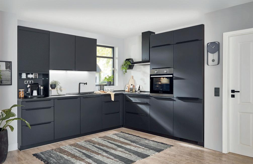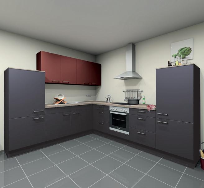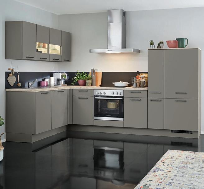 Preisgleich in 6 Frontfarben lieferbar 4 Eckküche Clean, ca. 310 x 420 cm, Lack matt Hellgrau/schwarz
