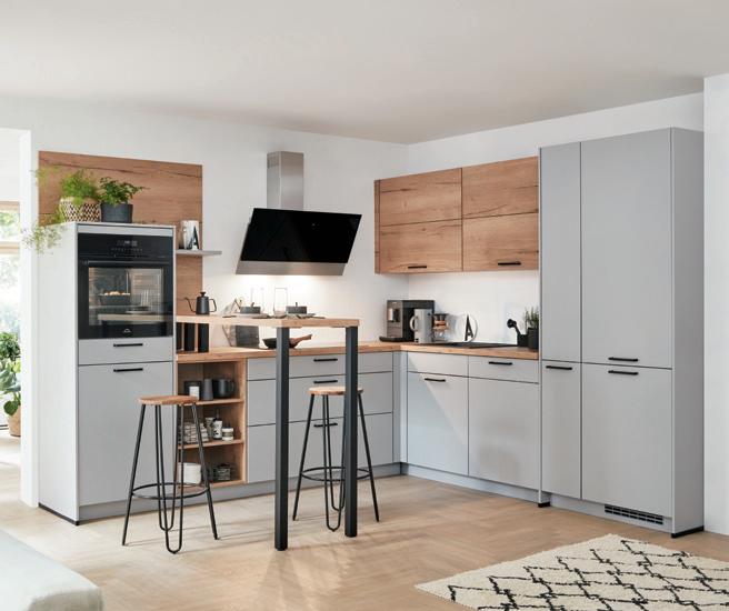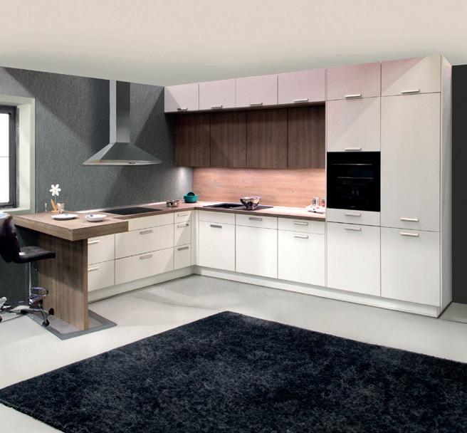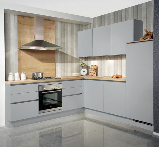 7 Eckküche Fashion, ca. 290 x 280 cm, Lack matt Seidengrau/Eiche Sierra 6999,-