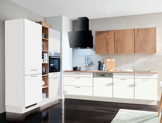 inkl. Auszugschrank, inkl. Falt-Lifttürenschränke, inkl. Ansatztisch, ohne Nischenverkleidung