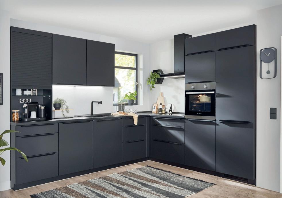 4 Eckküche Easytouch, ca. 305 x 265 cm, Lack graphit schwarz