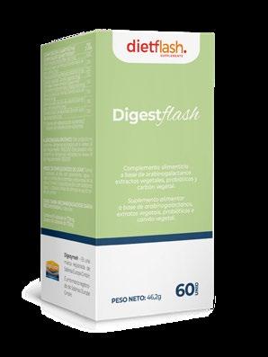 Principios activos: Enzimas digestivas (Digezyme®), arabinogalactanos, probióticos, carbón vegetal, extracto seco de hinojo, menta, cola de caballo y alcachofa.