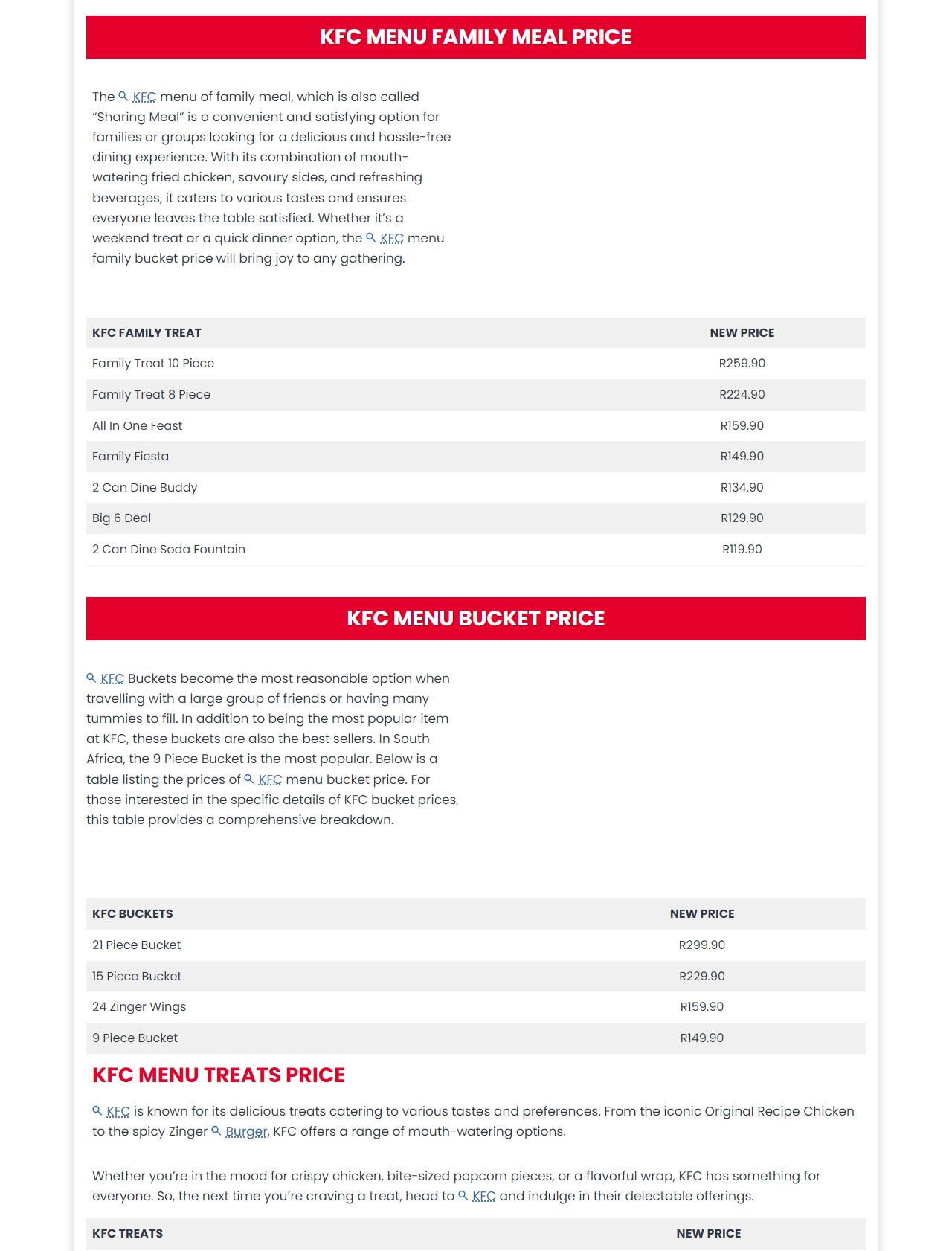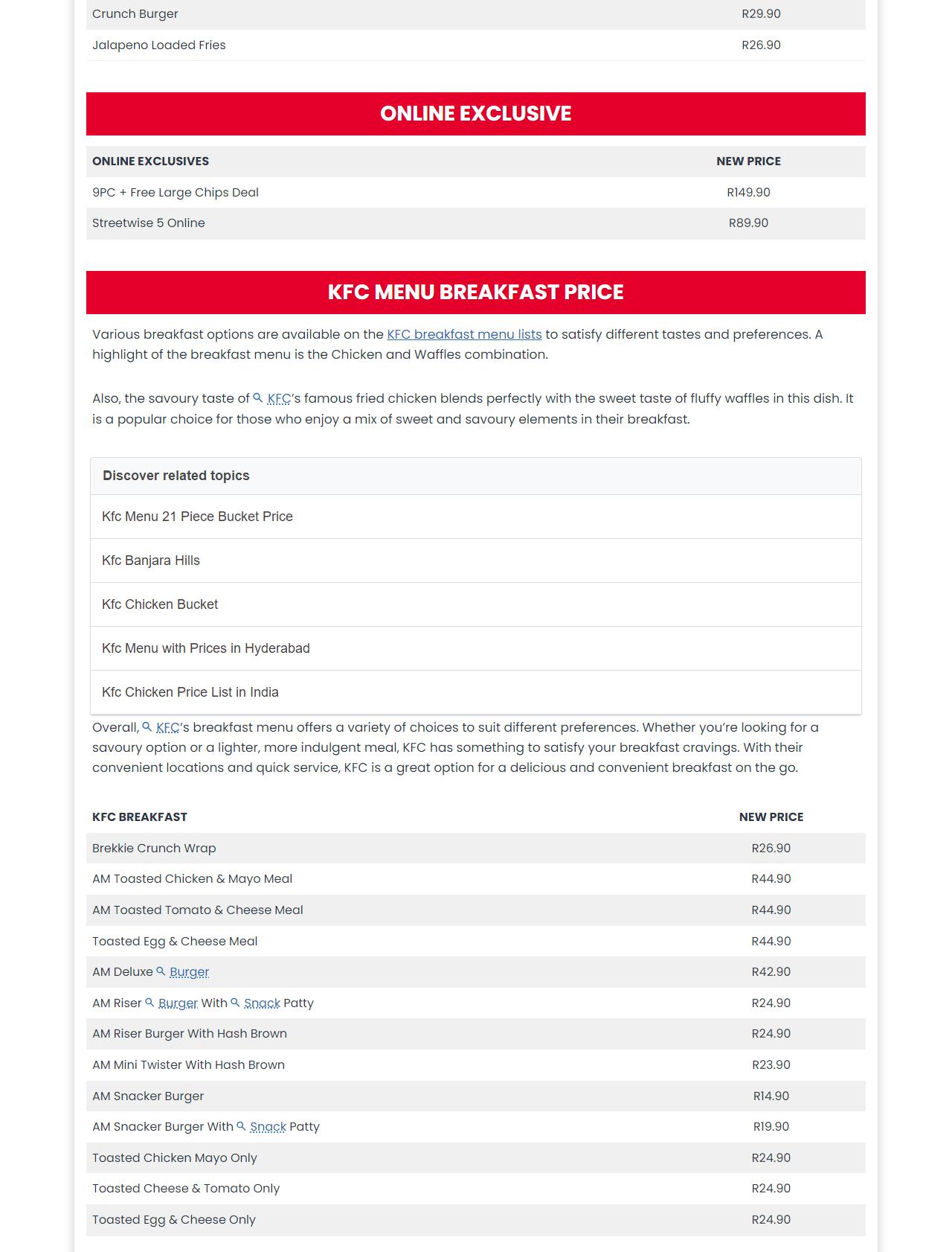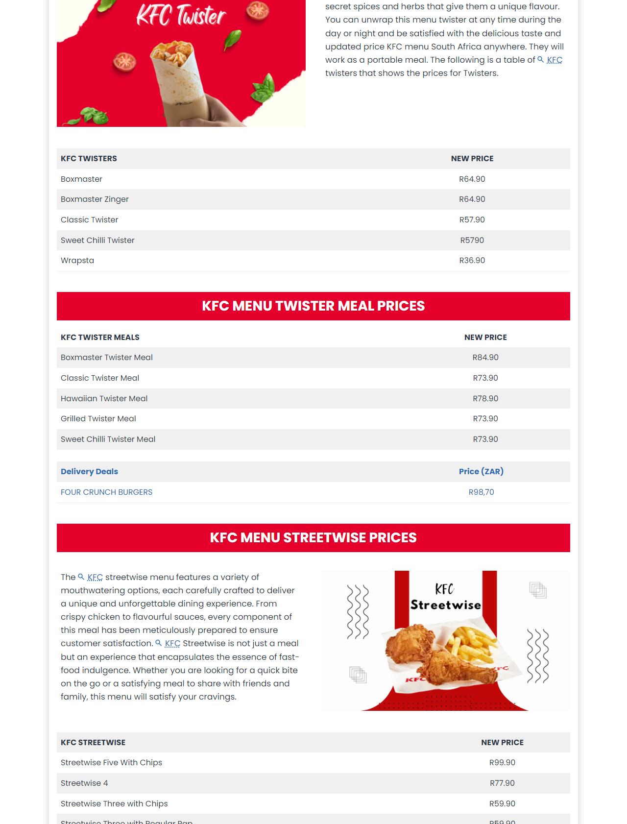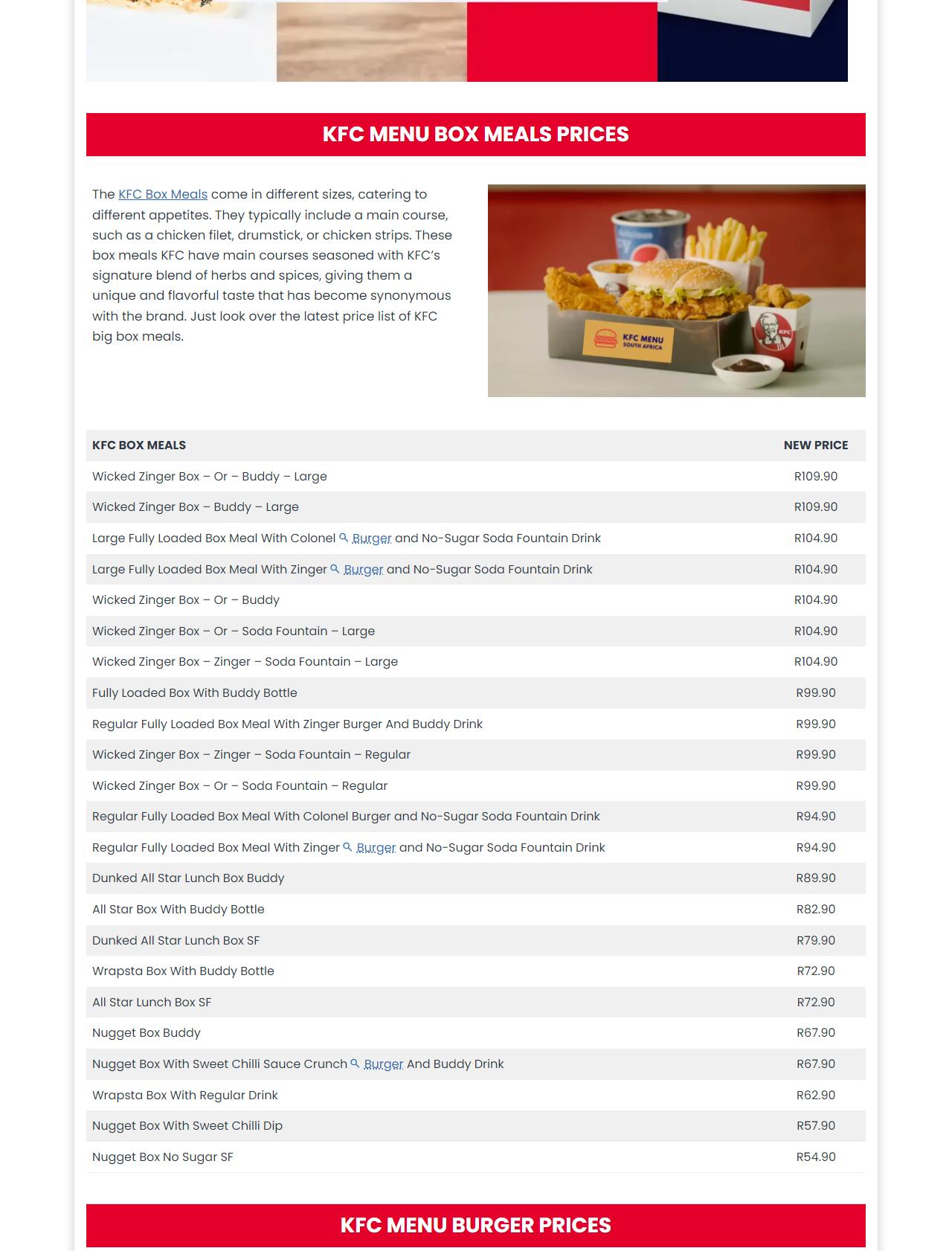 KFC Menu South Africa